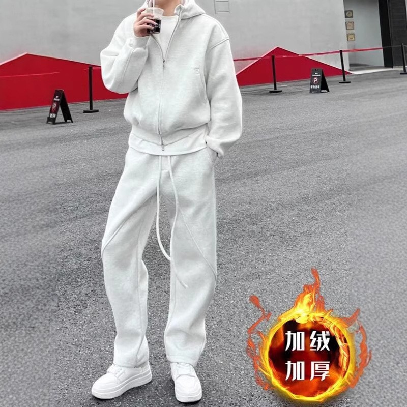 秋冬加厚休闲运动套装男宽松连帽外套卫衣卫裤两件套高级感一整套