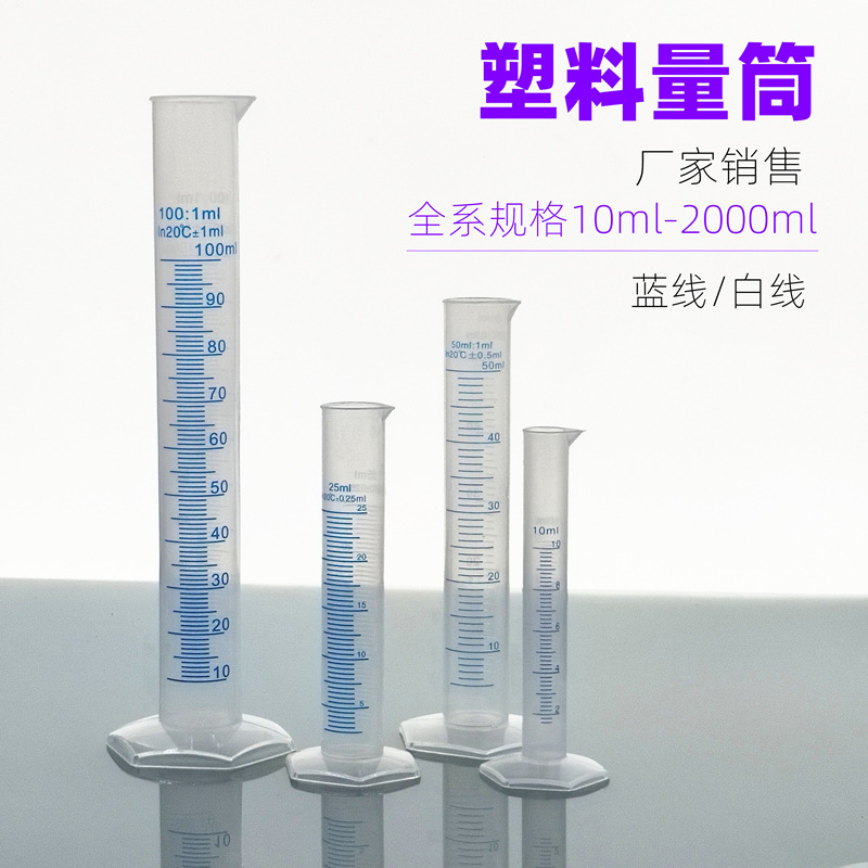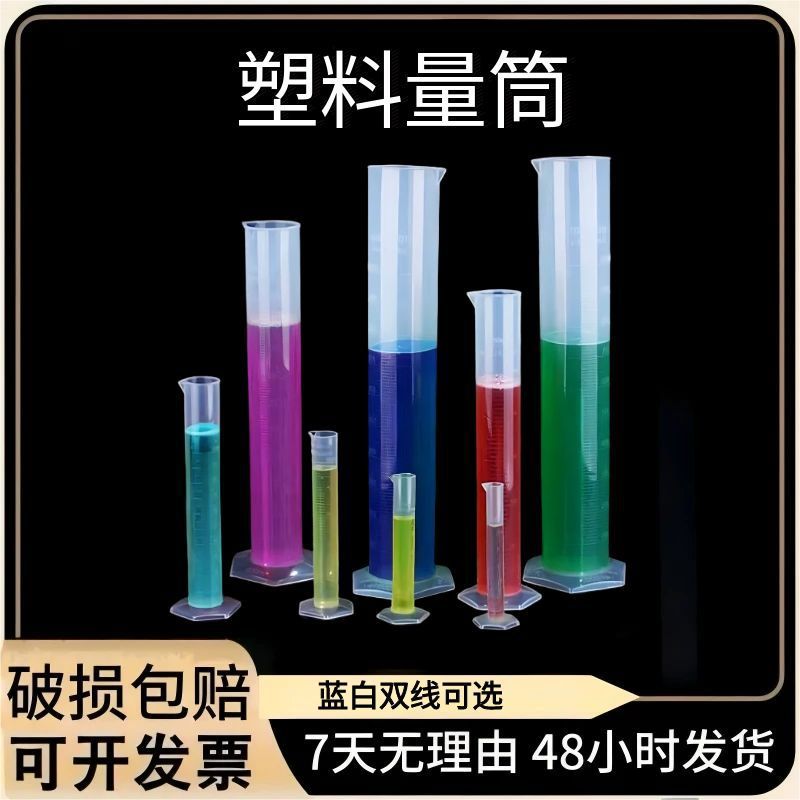 实验室塑料量筒10ml-2000ml烧杯蓝白带刻度直形量杯测量液体量筒
