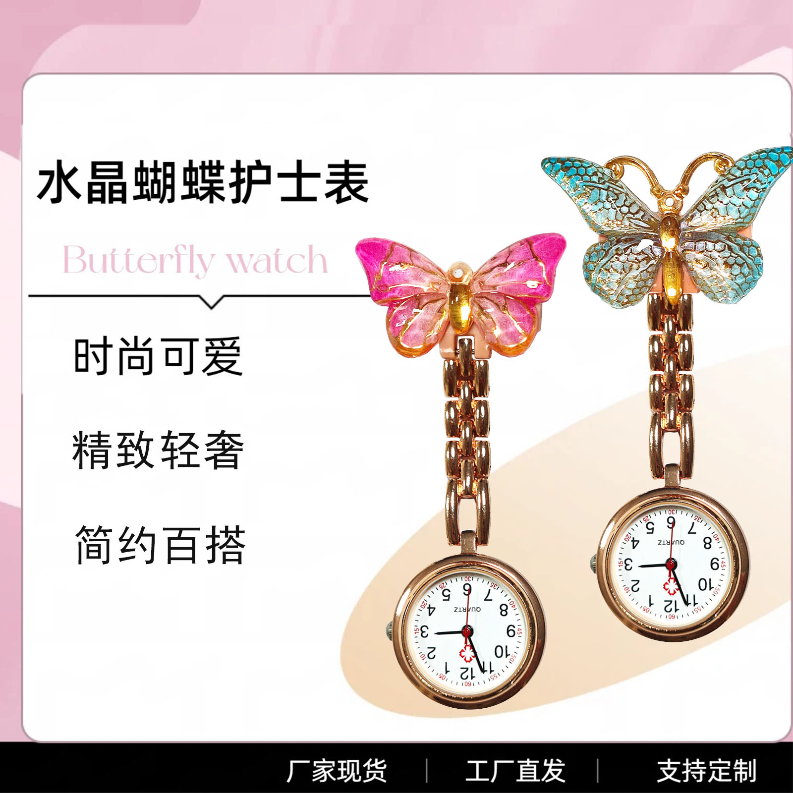 看護師用腕時計 学生試験用 クォーツ懐中時計 クリスタル蝶型掛け時計 工場直販卸売 学生試験用腕時計