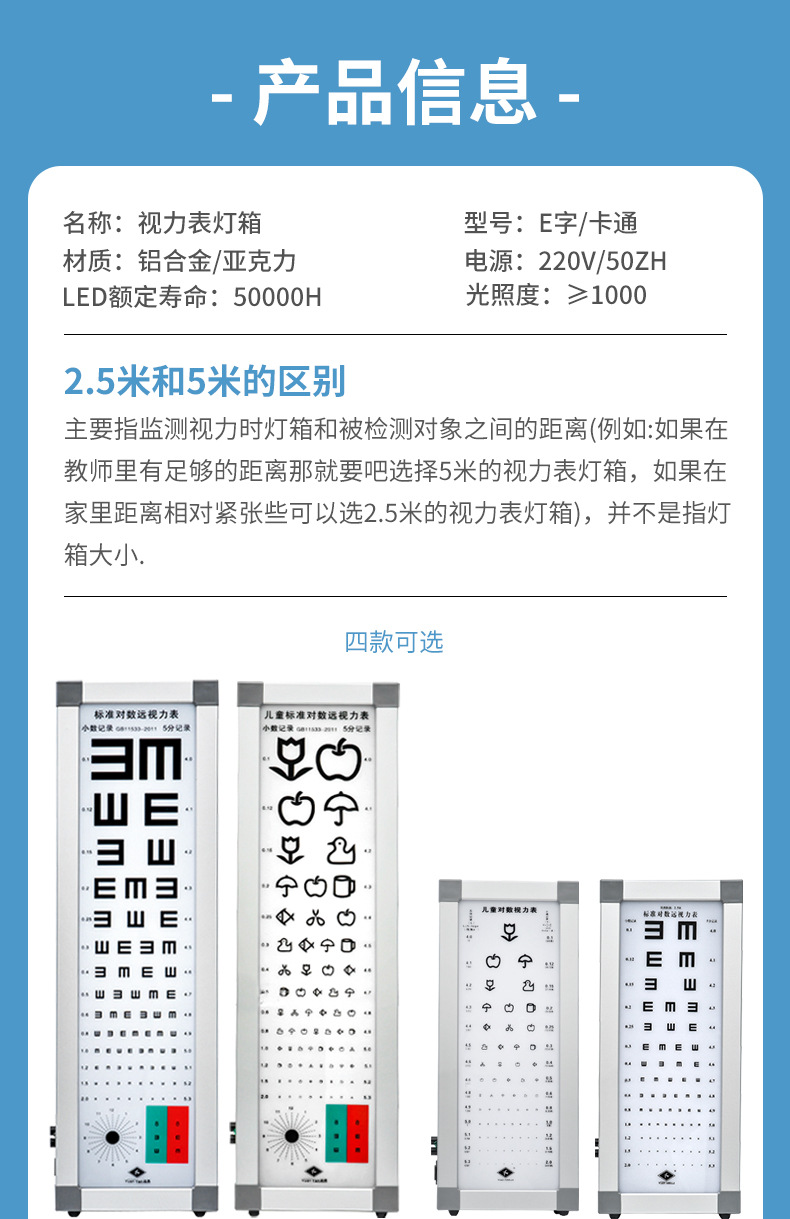 遠燕新型標準超薄型児童視力計ランプハウスled5メートル2.5家庭用成人視力測定ランプハウス