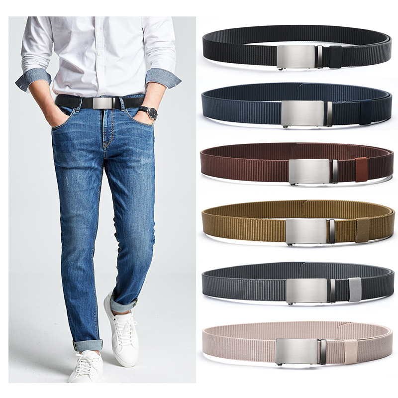 2024 新歯のない自動バックルベルトナイロンキャンバスベルトアウトドアレジャー通気性ベルトクロスボーダー