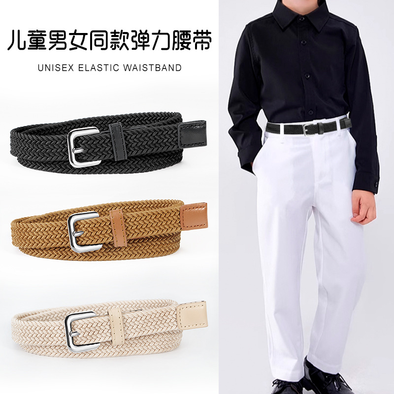 儿童腰带男女通用弹力腰带小学生帆布松紧裤带休闲针扣细皮带85cm
