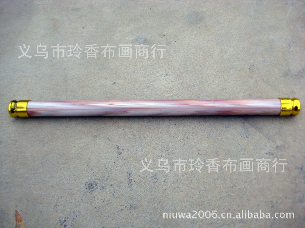 白色花纹塑料挂轴,杆子直径16毫米,非常像大理石的颜色,再搭配上金色帽子,看起来非常高档。