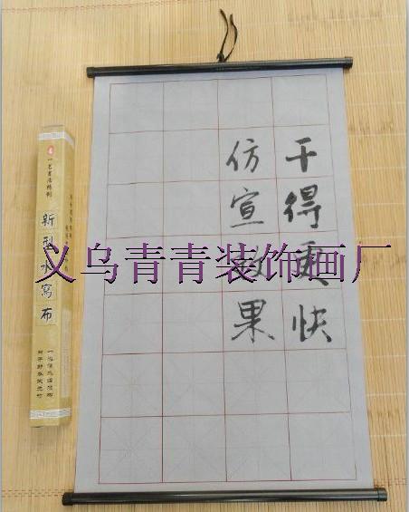 高档水写布上下两头杆,上面一根是正方形实心的,下面是25毫米的,杆子颜色有枣红色和木纹色两种,帽子有牛角帽和葫芦帽可以选择。