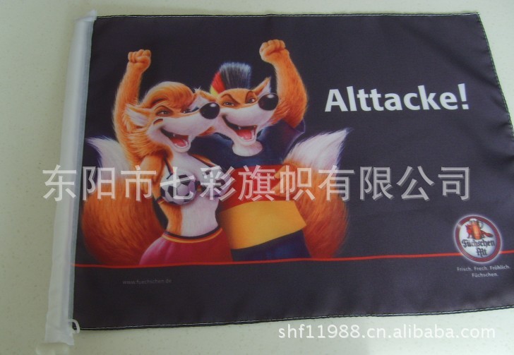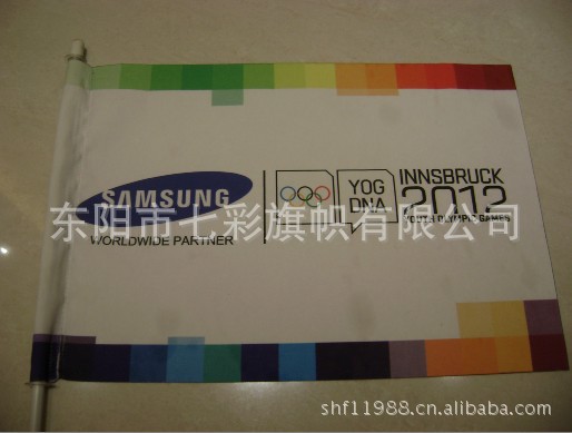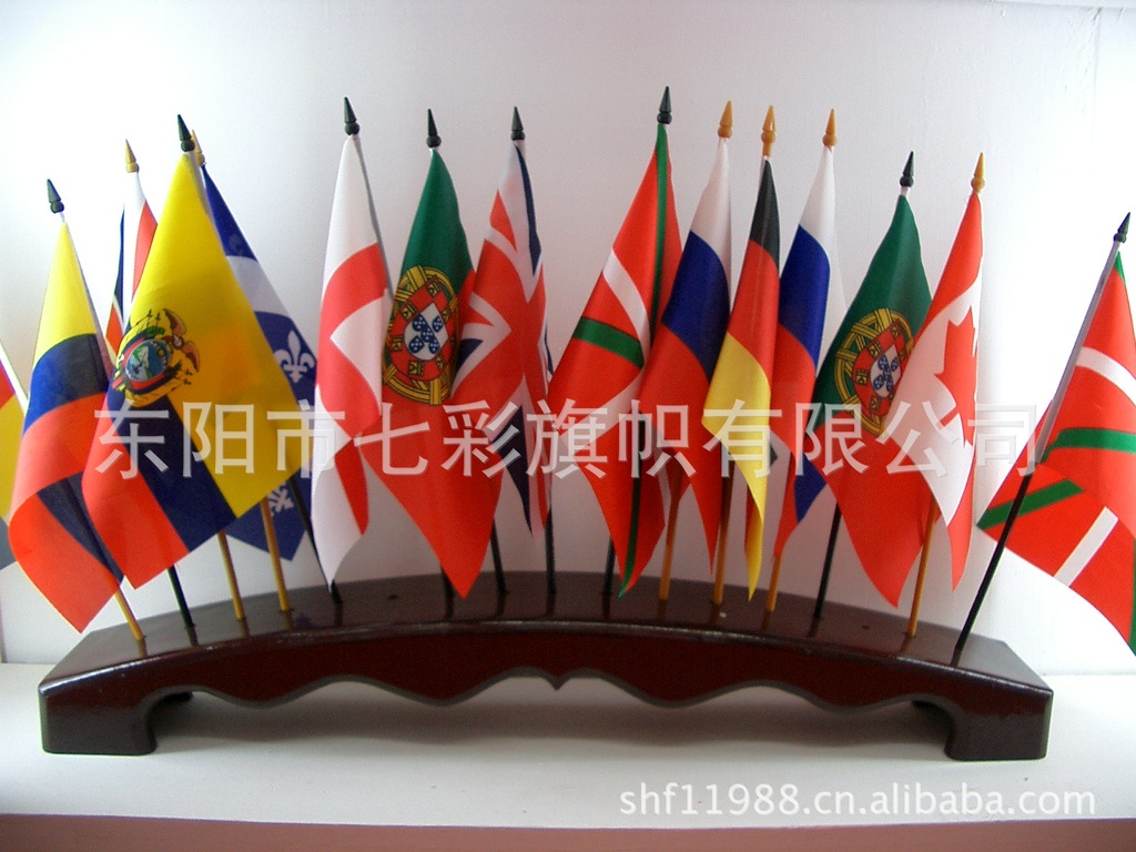 七彩旗业公司位于中国木雕之乡,红木家具之乡,浙江省东阳市南马镇朝阳路8号。毗邻义乌国际商贸城,距义乌机场25公里,高速东阳出口直行10多公里,交通十分便利。公司旗下有:七彩旗帜厂,七彩旗杆工艺品厂。是集生产加工,销售,外贸出口,为一体的市3A级企业。公司主要产品有:世界各国1号--8号国旗,谈判旗,各种规格串旗,汽车旗帜,发光汽车旗帜,手摇旗,国旗披风,各种墙壁广告旗杆,汽车旗杆,手摇旗杆,木旗杆,高档红木壁挂旗杆,旗座。同时可以来图来样定做。公司产品远销全球200多个国家和地区,深受客户的好评。