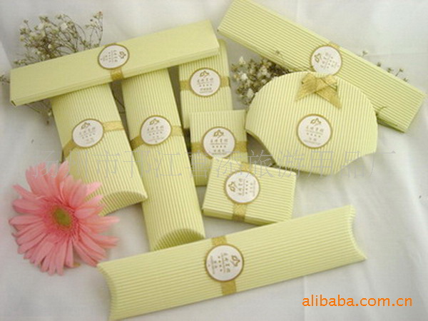 此外,还有其他客房一次性用品,主要包括牙具、香皂、梳子、洗发液、淋浴液、护发素、润肤露、拖鞋、浴帽、擦鞋器、针线包、袋泡茶、圆珠笔、夹纸笔、剃须刀、棉签、指甲锉、口杯套、吸水杯垫、杯盖、火柴、洗衣袋、购物袋、托盘、垃圾桶、服务指南、调酒棒、标牌等高级宾馆、酒店用品。颜色、尺寸、店徽、按照客户要求生产。每个品种的各个样式可以按照客户要求生产。