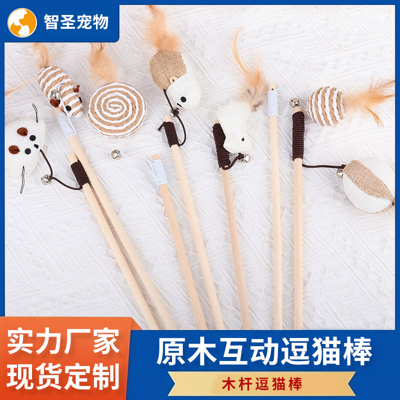 メーカーの現物の新型の木の竿は猫の棒の羽の鈴のネズミをからかって猫の棒のインタラクティブな猫のおもちゃの猫の用品を笑わせます。