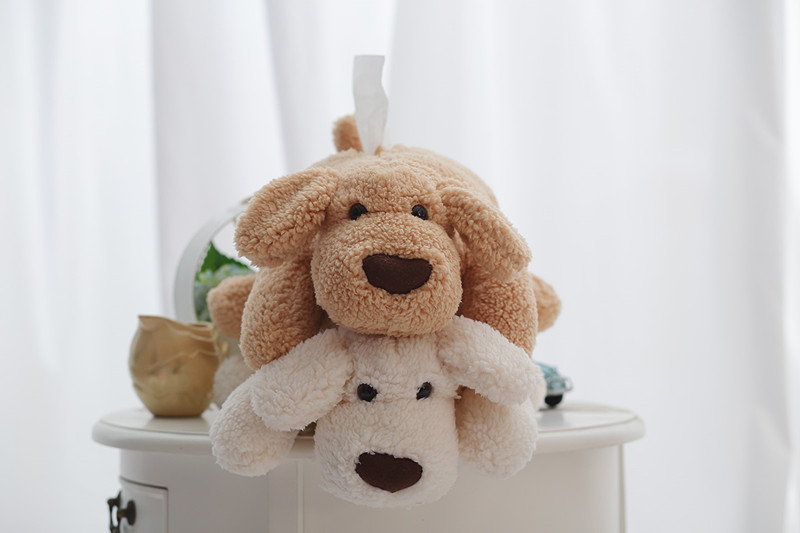 漫画風テディ犬ティッシュボックス 車載用ティッシュケース 漫画風ぬいぐるみ犬ティッシュカバー ギフト