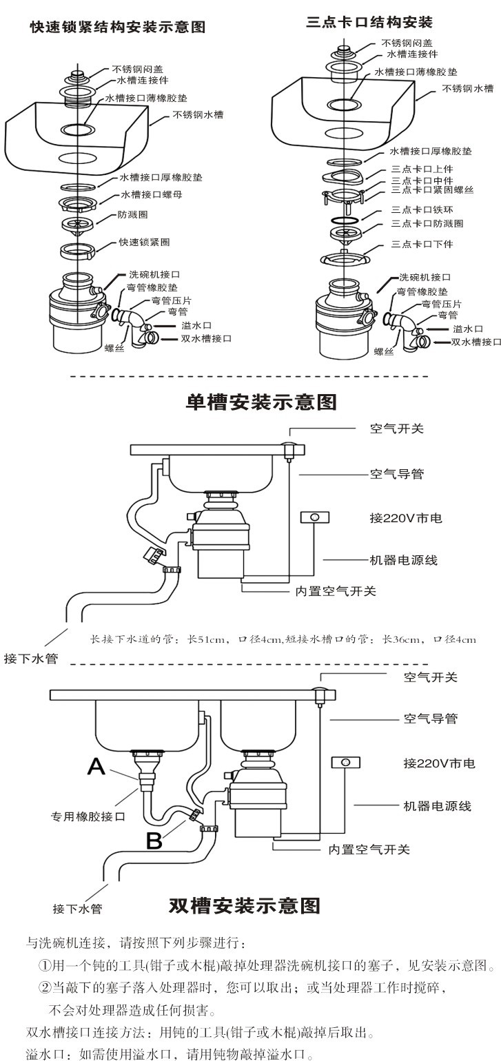 食物垃圾处理器是一种现代化的家用电器,能够快速解决掉易腐烂变质的餐厨垃圾,从而改善消费者的生活方式。食物垃圾处理器它能够采用全新的方法来处理现代家庭中的食物垃圾:残羹剩饭、肉鱼骨刺、蔬菜、瓜皮果壳、蛋壳、茶叶渣、咖啡渣、小块玉米棒芯、禽畜小骨等,避免食物垃圾因储存而滋生病菌、蚊虫、蟑螂,减少厨房异味,从而有效促进家人健康、优化家居环境,并解决下水道容易堵塞的问题。