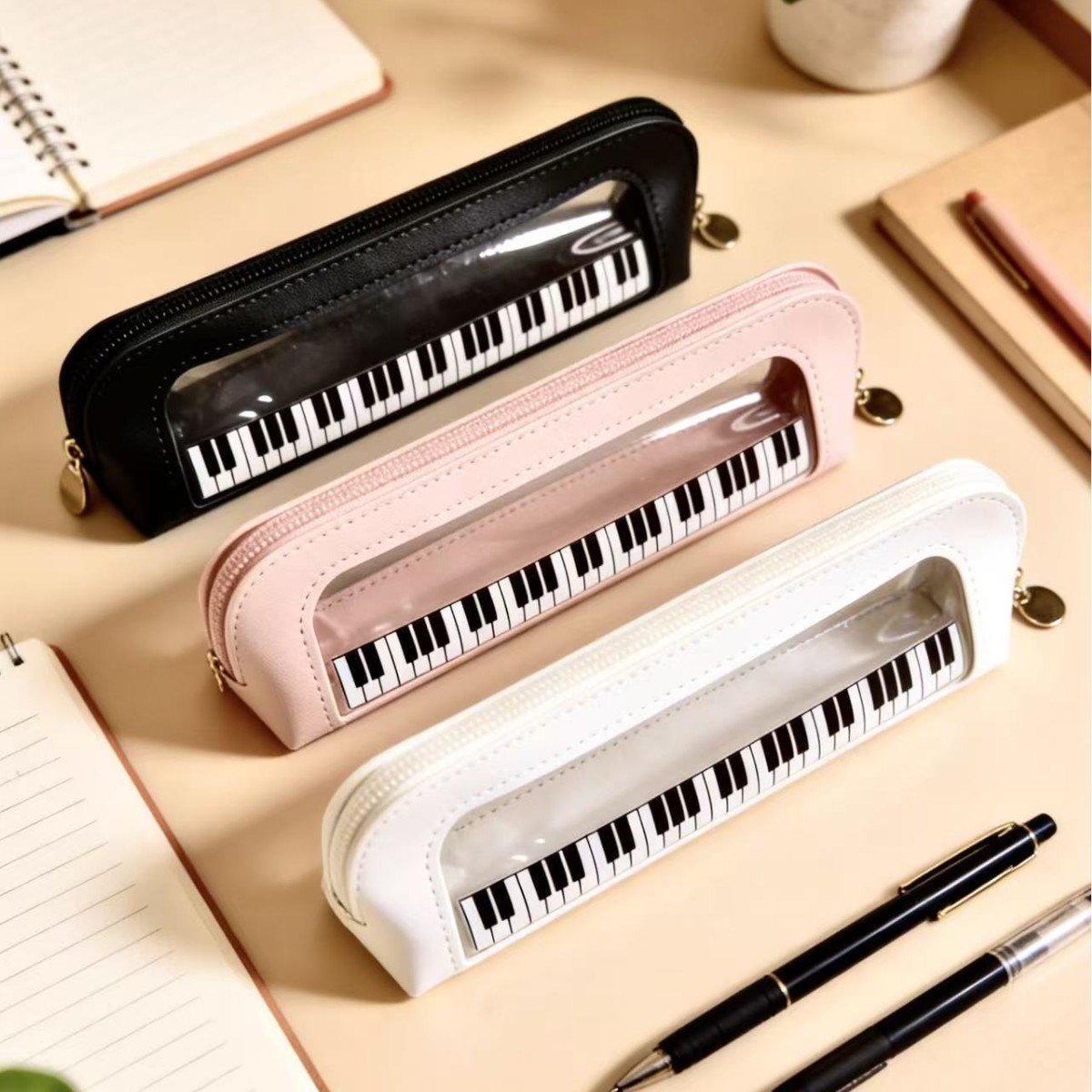 创意琴键新款透明拼接pvc笔袋大容量学生文具袋女生化妆刷收纳包