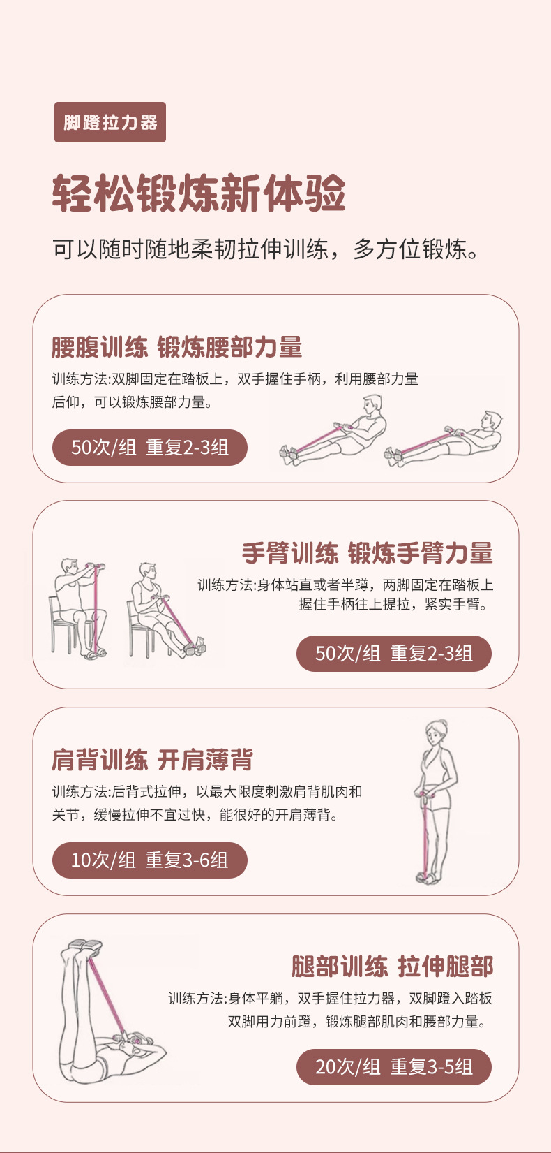 脚蹬拉力器学生练习仰卧起坐辅助拉力绳家用女瑜伽健身腰腹训练器