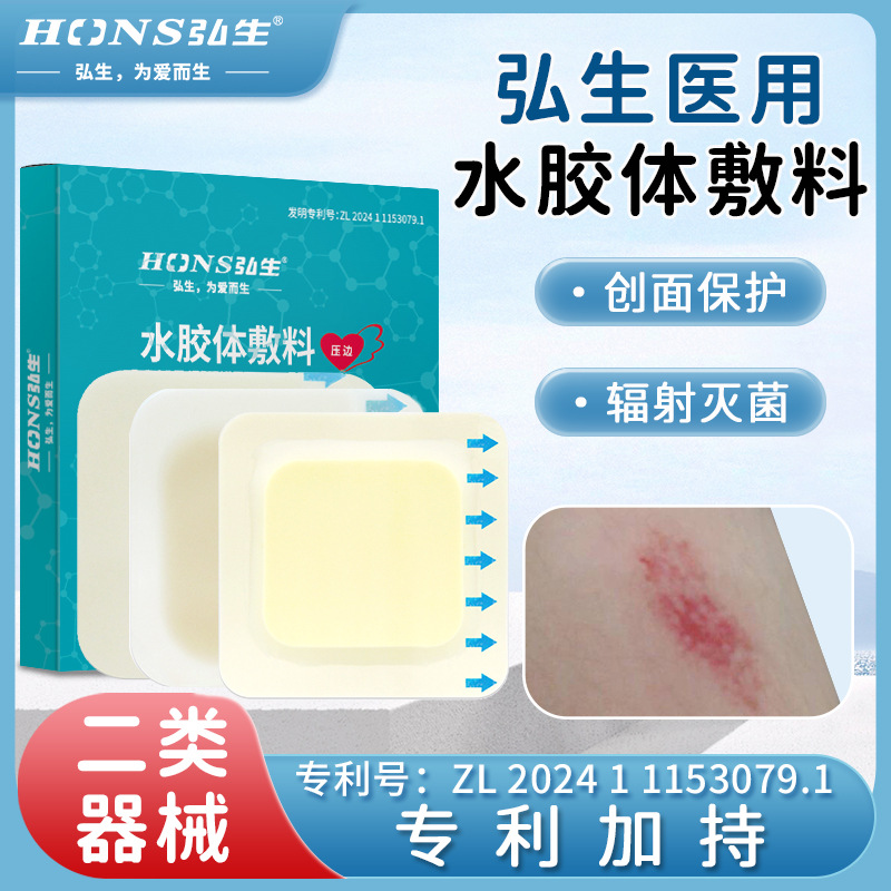 弘生水コロイド包帯に透明なエッジを敷いた泡シリコンゲルの人工皮が康楽保胸にシールを貼っています。