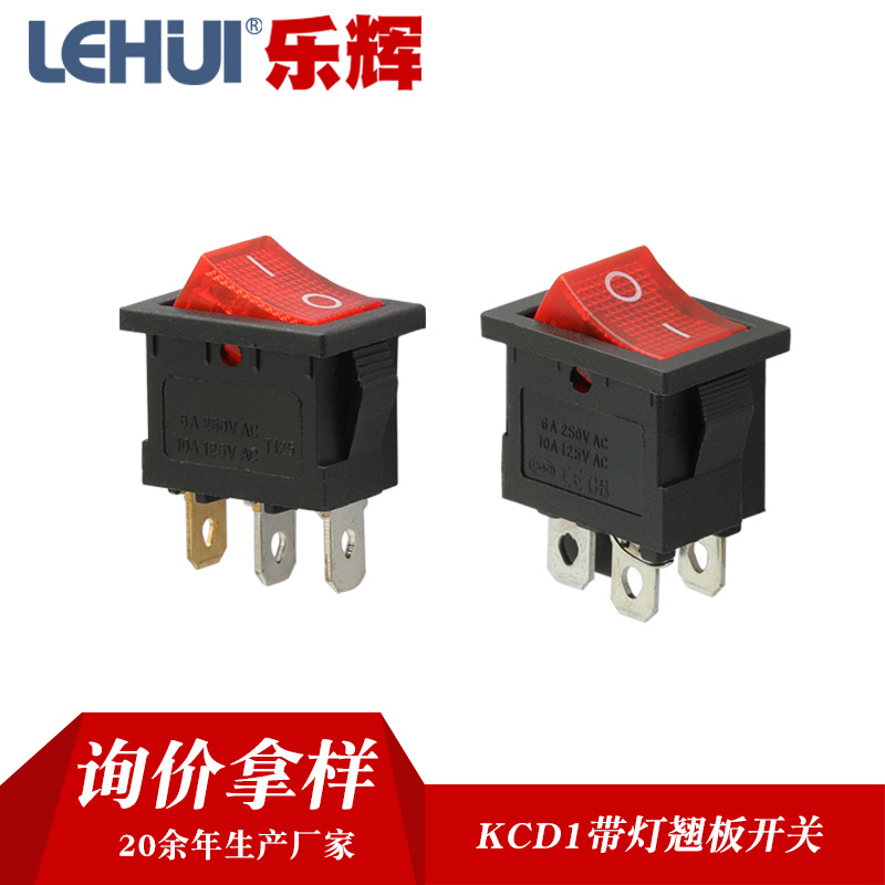 KCD1-101N带灯船形开关 KCD1-302N 3脚4脚红盖翘板开关