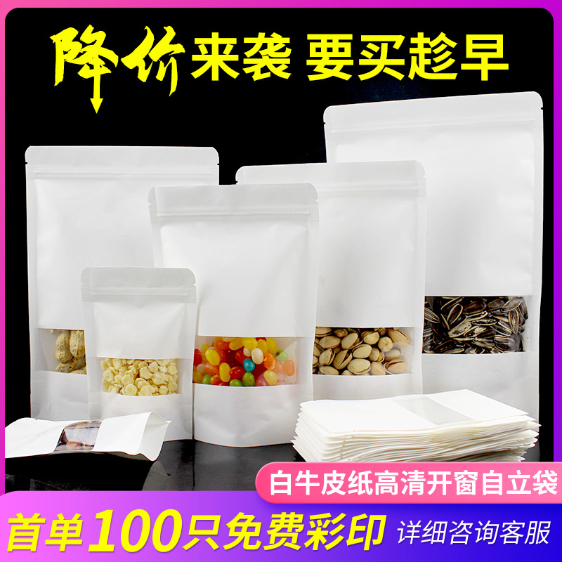 白い窓開けクラフト紙袋干物食品包装袋フロストクラフト紙自立自封袋ナッツ密封袋