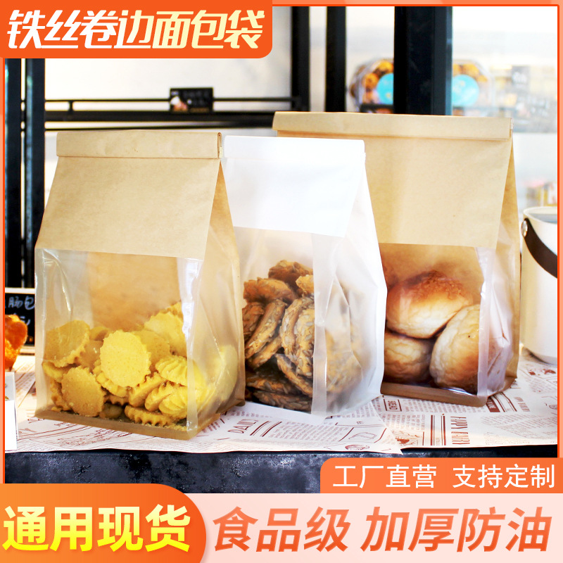 クラフト紙針金巻き縁自封袋透明開窓八辺封袋トーストパン袋焙煎食品袋現物