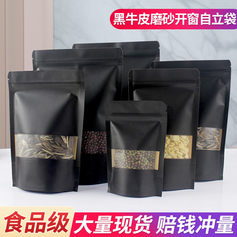 窓開けクラフト紙袋ドライフルーツ食品包装袋フロストクラフト紙自封袋自立袋茶葉密封袋