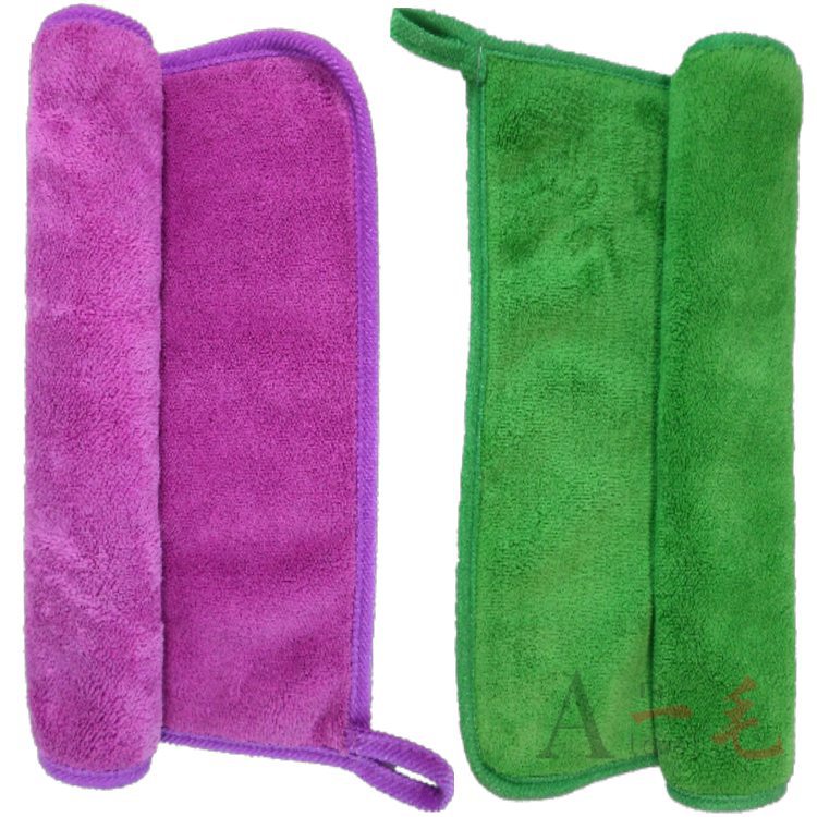 易清洗:普通毛巾使用时,特别是天然纤维毛巾,将被擦物表面的灰尘、油脂、污垢等直接吸收到纤维内部,使用后残留于纤维之中,不易清除,用了较长时间后甚至会变硬失去弹性,影响使用。而超细纤维毛巾是把污物吸附于纤维之间(而不是纤维内部),再加之纤维纤度高、密度大,因此吸附能力强,使用后只需用清水或稍加洗涤剂清洗即可。