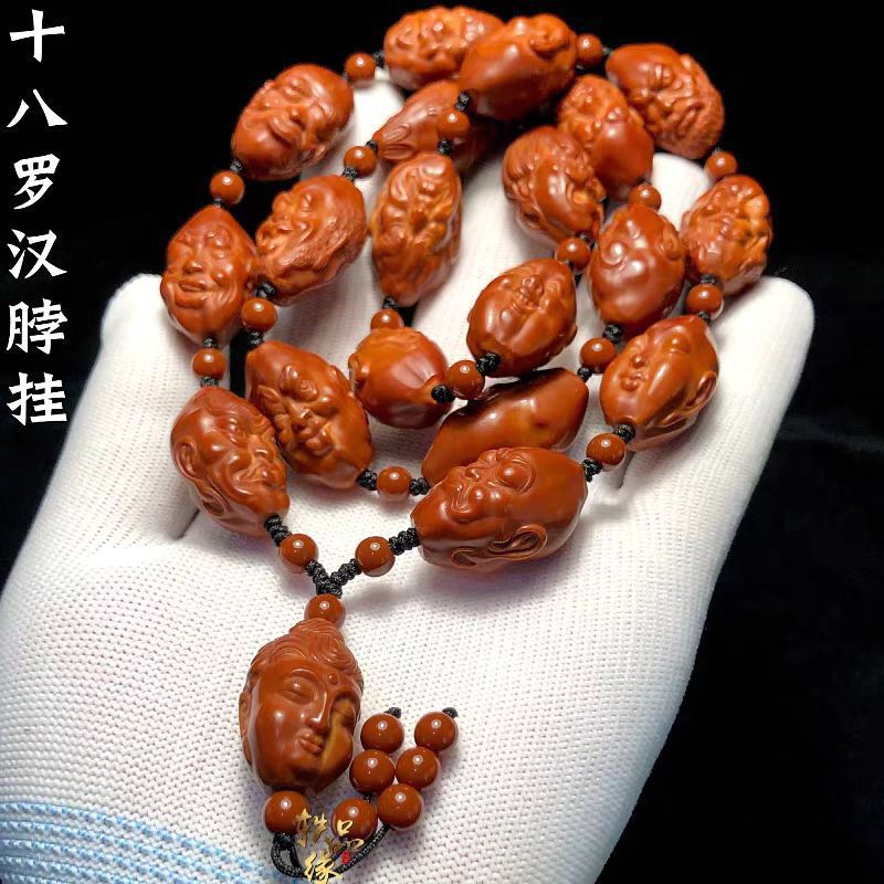 天然オリーブ核のブレスレット、十八羅漢と弥勒仏が彫刻されています。 古典的な民族風の古油核文玩仏珠