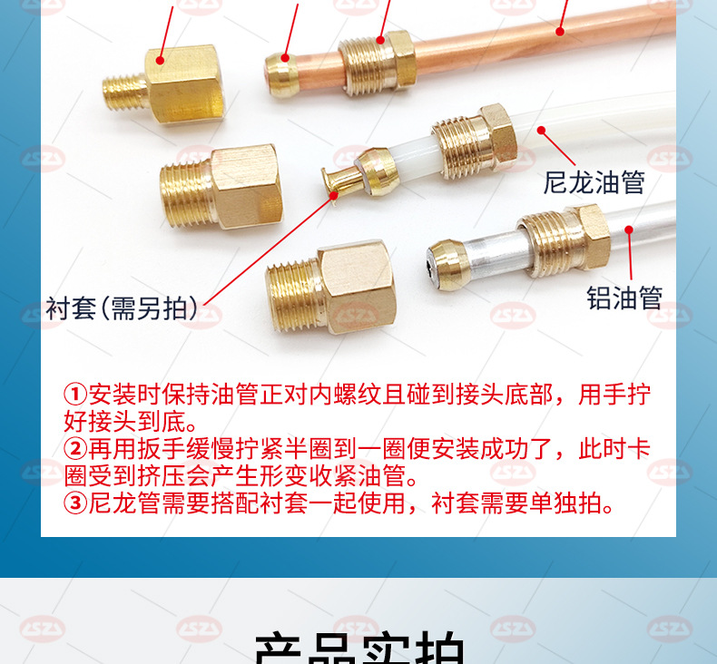 油管継手3点セット銅管カードカバー潤滑継手銅珠油令頭油管ブッシュ