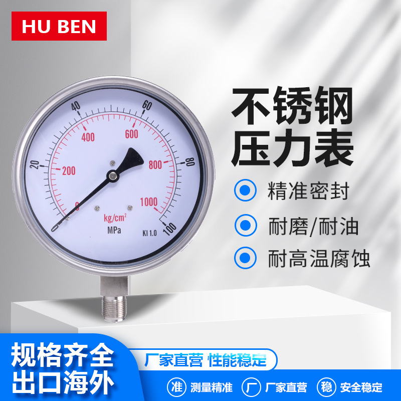 ステンレス真空圧力計卸売り軸方向に取り付けた蒸気耐高温型浄水器専用ステンレス充填油
