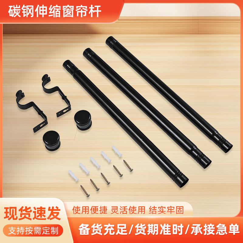 Amazonクロスボーダー炭素鋼伸縮カーテンロッドは厚みのあるローマンロッド伸縮ロッド黒ネジロッドを接続できます