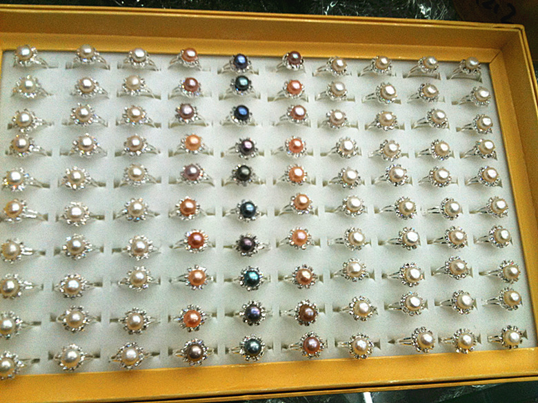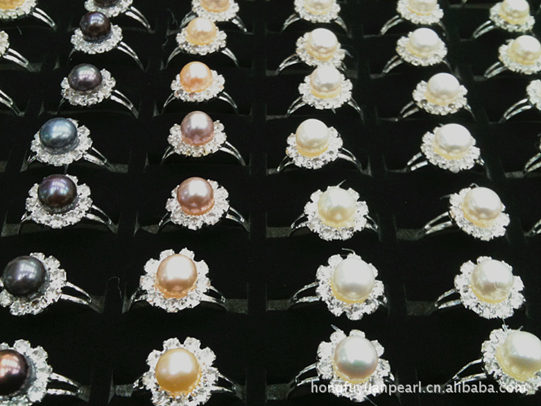 珍珠品牌:【宏福源珠宝】 珍珠编号:HYF珍珠小类:普通珍珠戒指 珍珠产地:诸暨山下湖 珍珠款式:时尚,豪丽 珍珠品质:AAA珍珠光泽:强亮 珍珠颜色:白粉紫混装 珍珠配件:合金 珍珠优势:款式简单,价格实惠