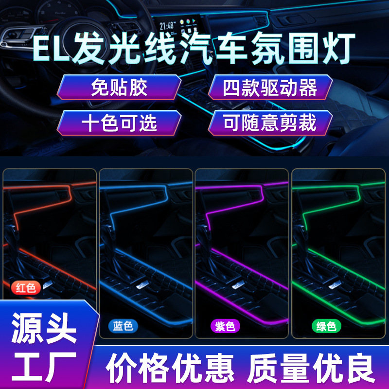 十色el冷光線車内改造雰囲気灯シガレット電池ケース付きusb配線ドライブ発光線
