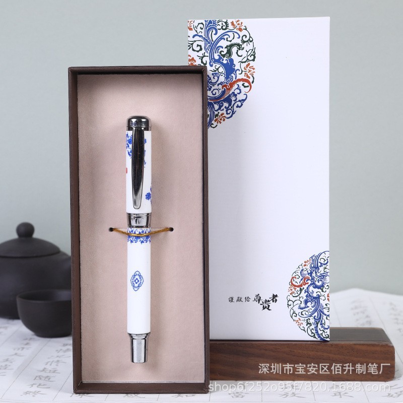 メーカー直供陶磁器水性筆ビジネススーツ筆青花模様宝珠筆真磁器青花ギフトサインペン