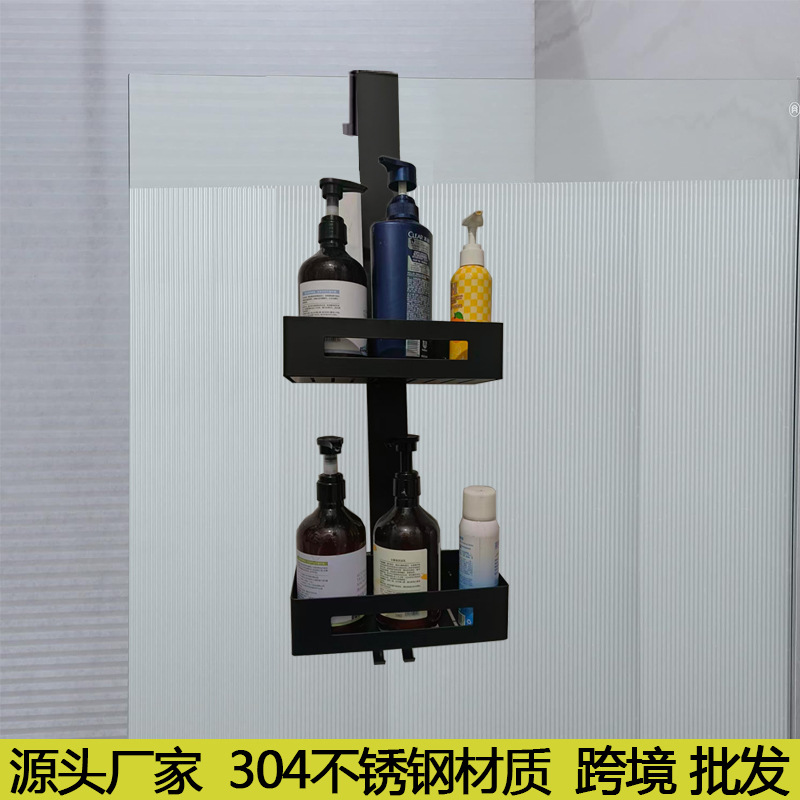 304ステンレス製浴室収納ラック、トイレ収納ラック、シャワールームガラスドア吊り下げラック、穴あけ不要吊り下げバスケット