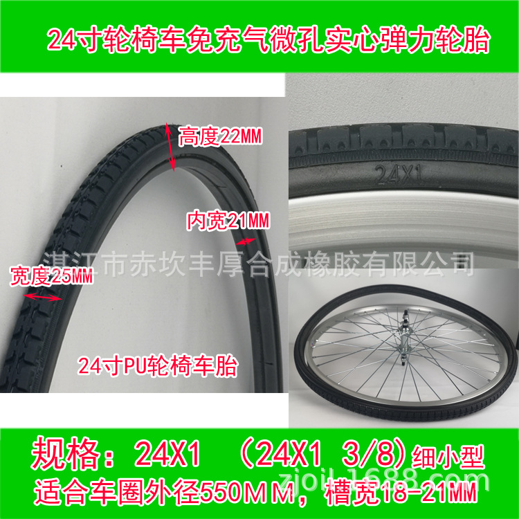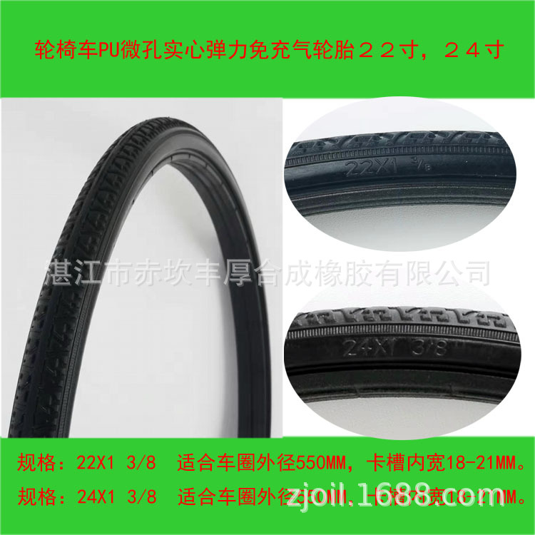 轮椅车PU发泡实心弹力轮胎免充气轮胎前轮后轮8寸22寸24寸
