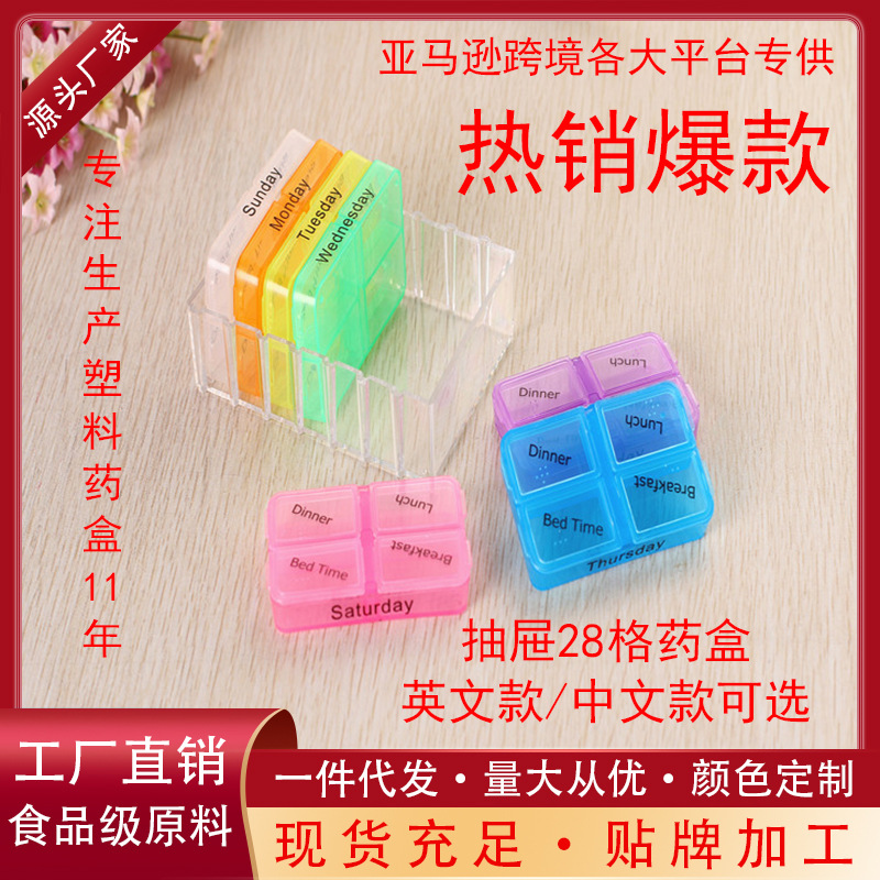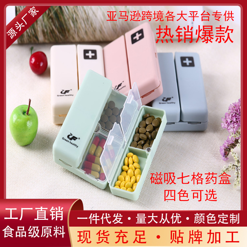 2、收纳盒数量设置合理,正好7个三联格内置小盒,并设置了完全不同的7个颜色,可以保证一周的用药量,还不会搞混;