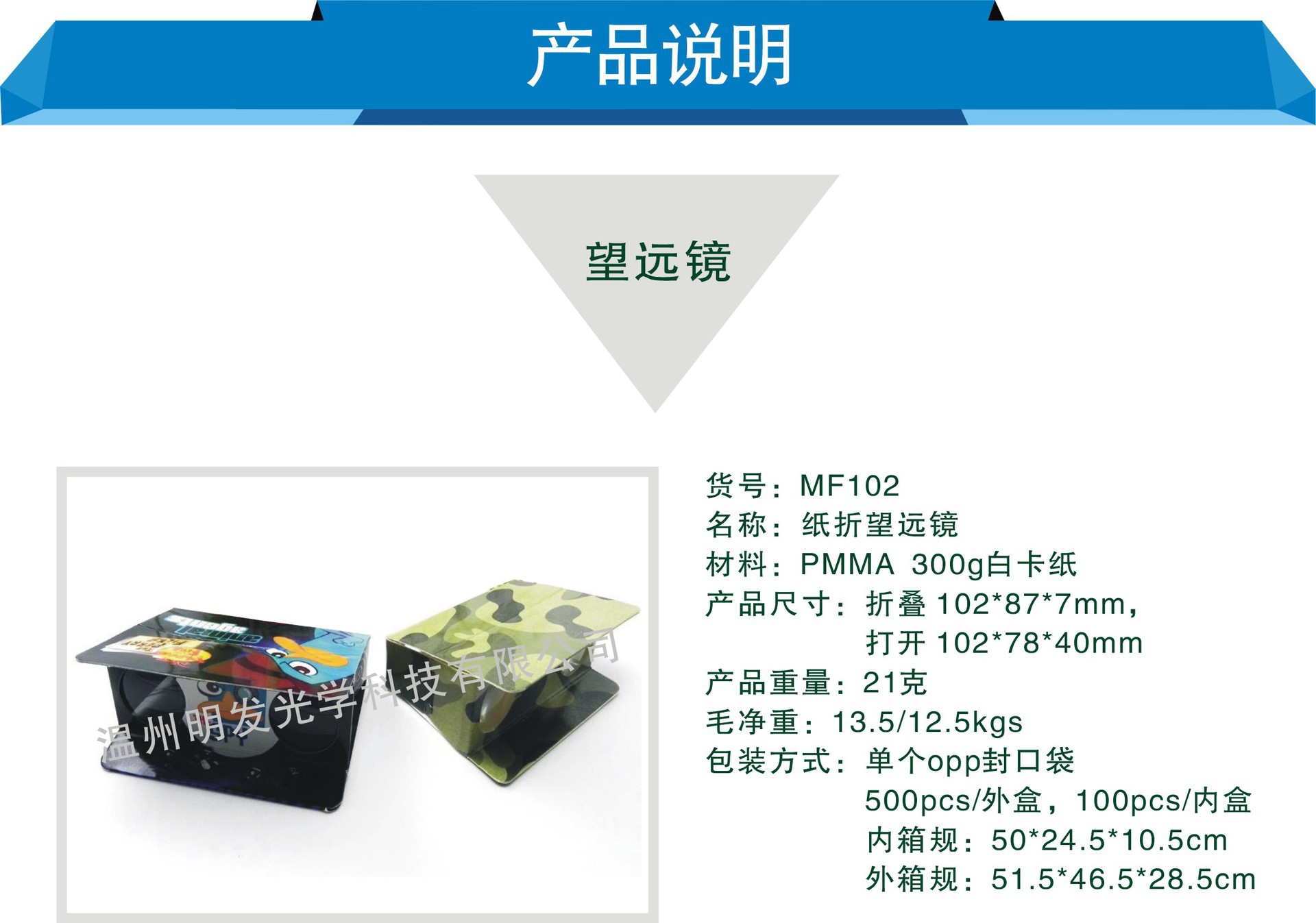 产品名称:纸折望远镜 产品材料:PMMA 300g白卡纸