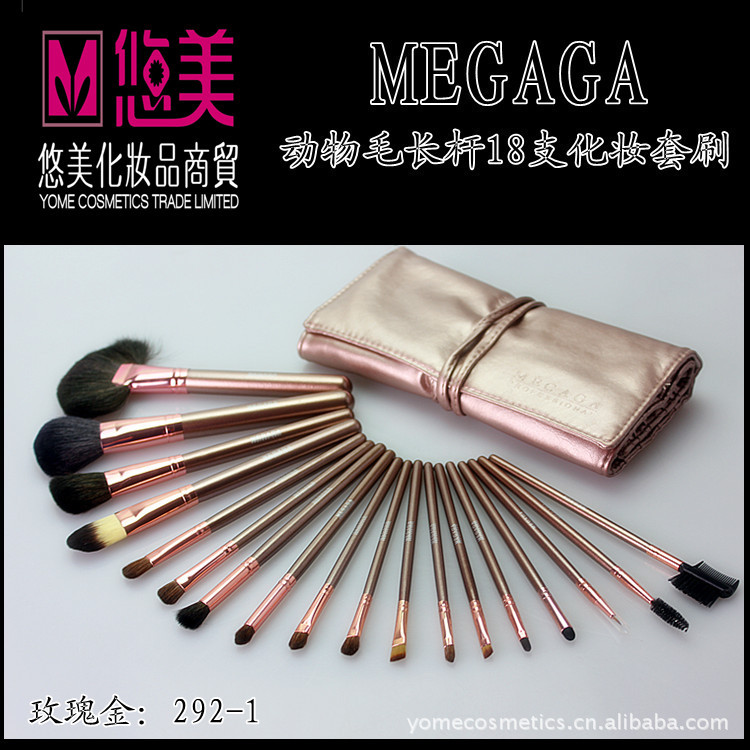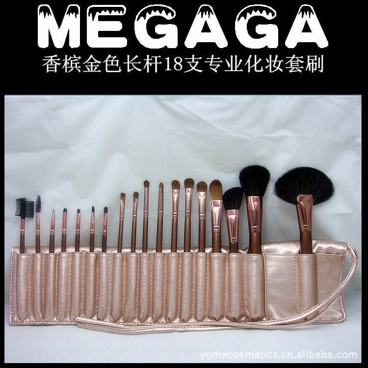 品名:18支香槟金长杆动物毛专业化妆套刷