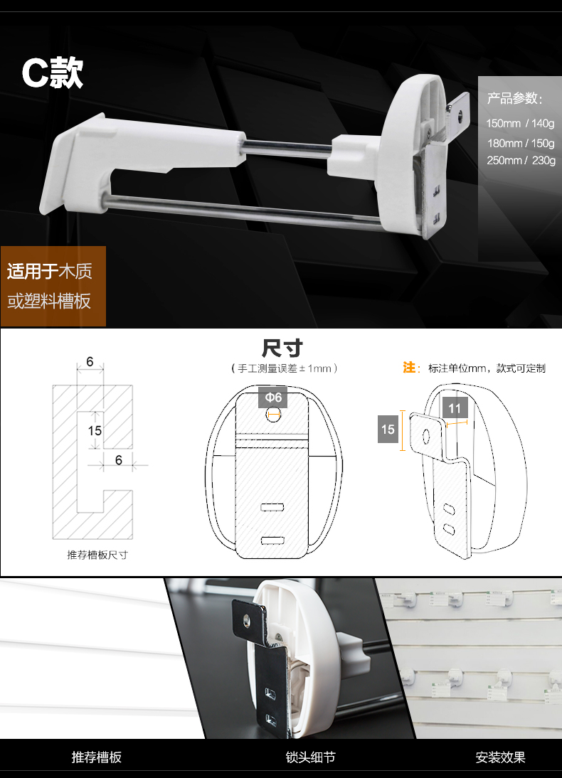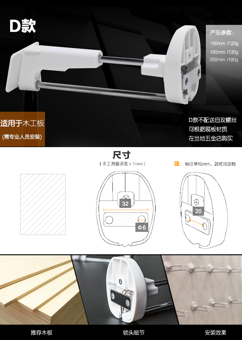 应用:适合木板、孔板、方管、槽板、夹板、胶合板等材料做的背影板