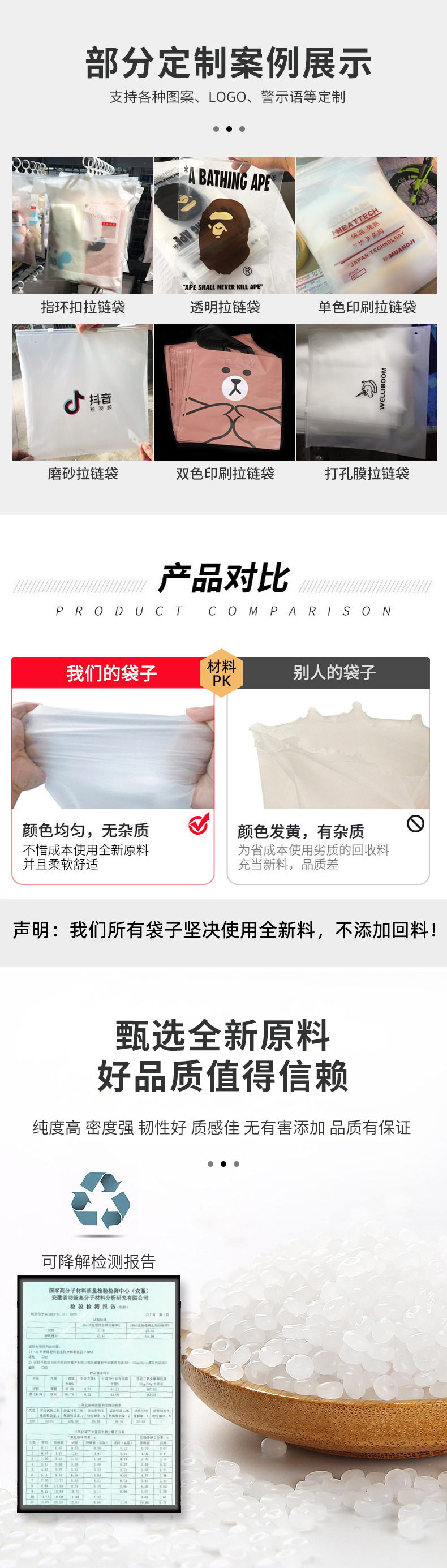 工場在庫 厚手CPEマット透明ジッパー袋 衣類・タオル包装袋 セルフシール袋 ロゴ印刷可能