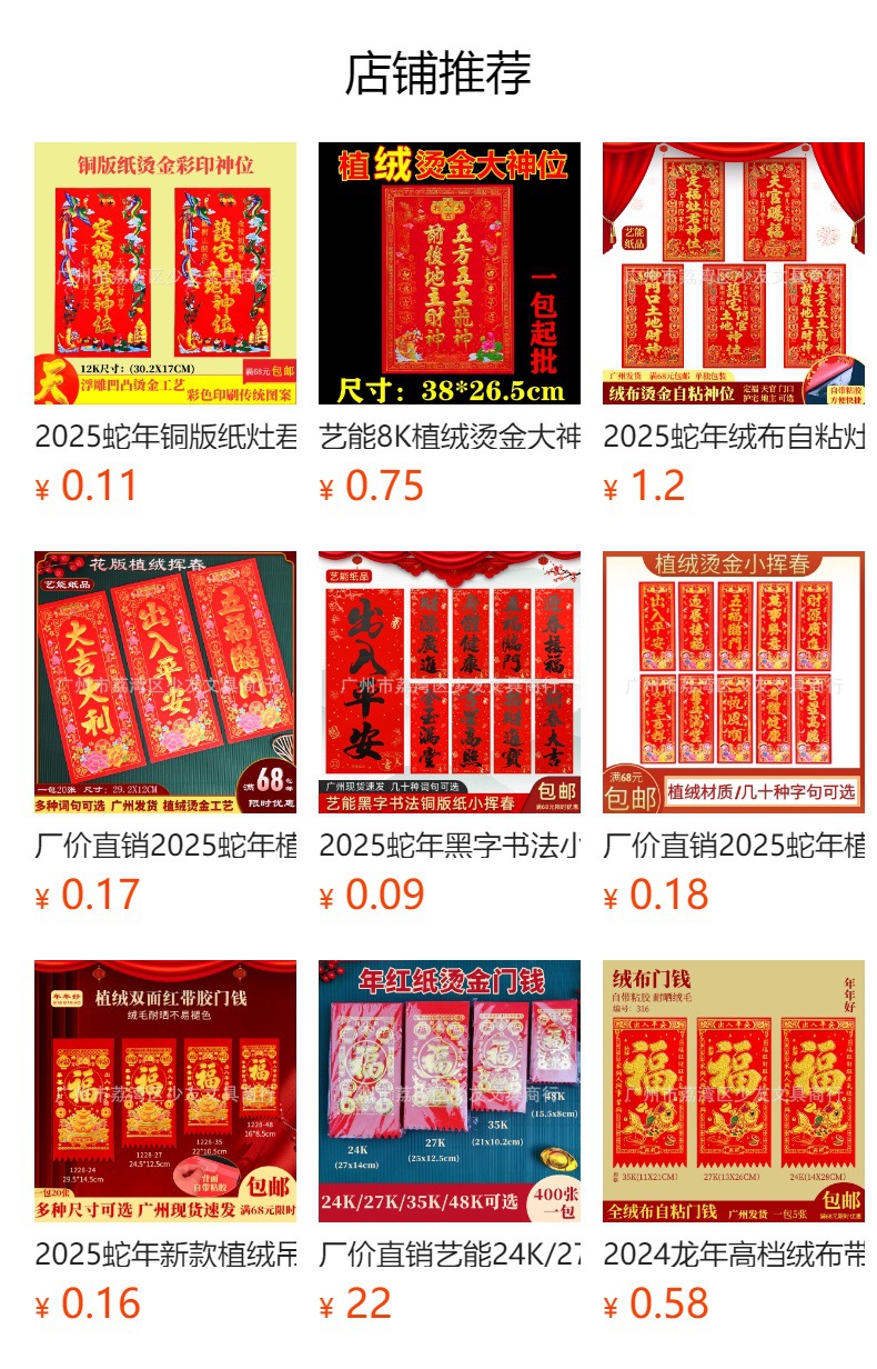 2026年馬年卸売新春祝賀用品銅版紙金箔彩色春節門飾り門条年物卸売