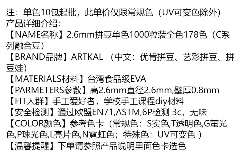 ユーケン融合ビーズ 2.6mm5mmビーズ 手作りクリエイティブDIYおもちゃ 全色418色 パーラービーズ 立体