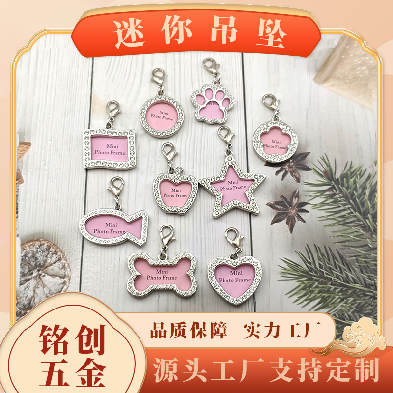 爆款宠物项圈饰品骨头爱心牌镶钻相框防丢信息牌手写diy吊坠挂件