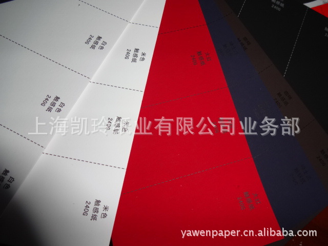 250克单面触感纸、双面触感纸,触感纸是一种具有绒面触感的纸张,特殊的涂布技术和工艺,印刷效果好。常用在产品印刷、包装行业。