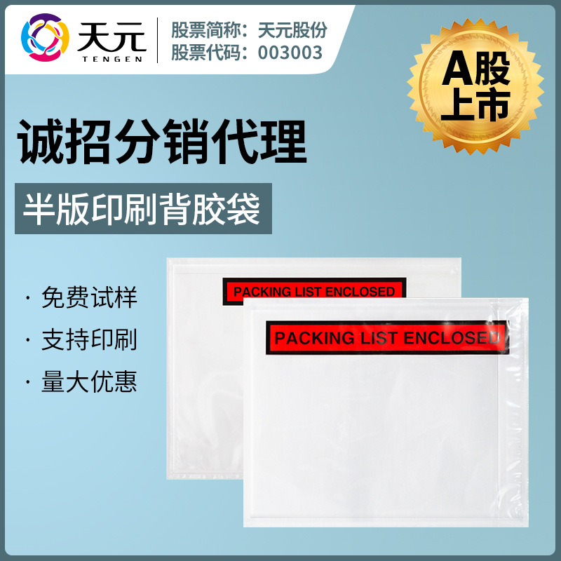 天元透明バックパック物流伝票自封袋透明高精細防水自粘袋印刷可能logo a 5