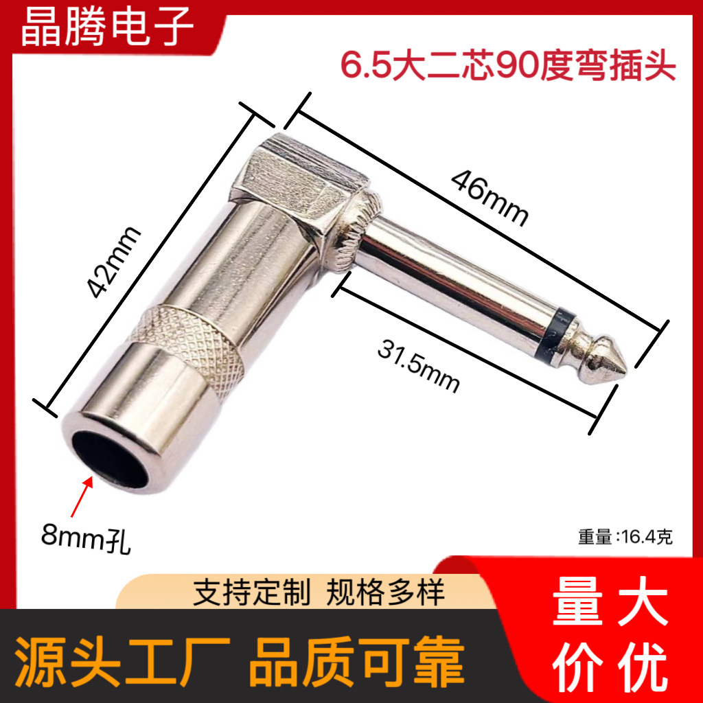 90度エルボ6.35オーディオマイクプラグ 6.35大型2芯プラグ 6.3モノラルオーディオプラグ