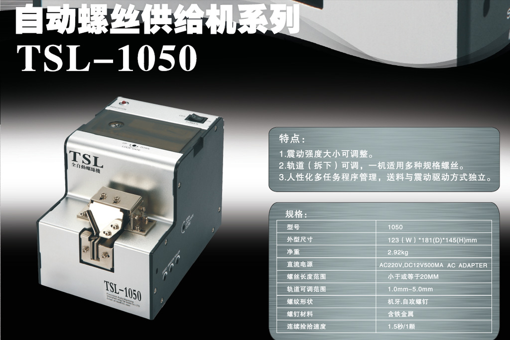 螺丝机,英文名screw feeder,又称为螺丝排列机,螺丝供给机,是一种比较简单的把螺丝排成一排,以提高工作效率为目的的一种小型自动化设备,常常与电动螺丝起子配套使用,广泛应用于电子产业。一机可适用多种规格螺丝,大大提高了生产线的生产效率。