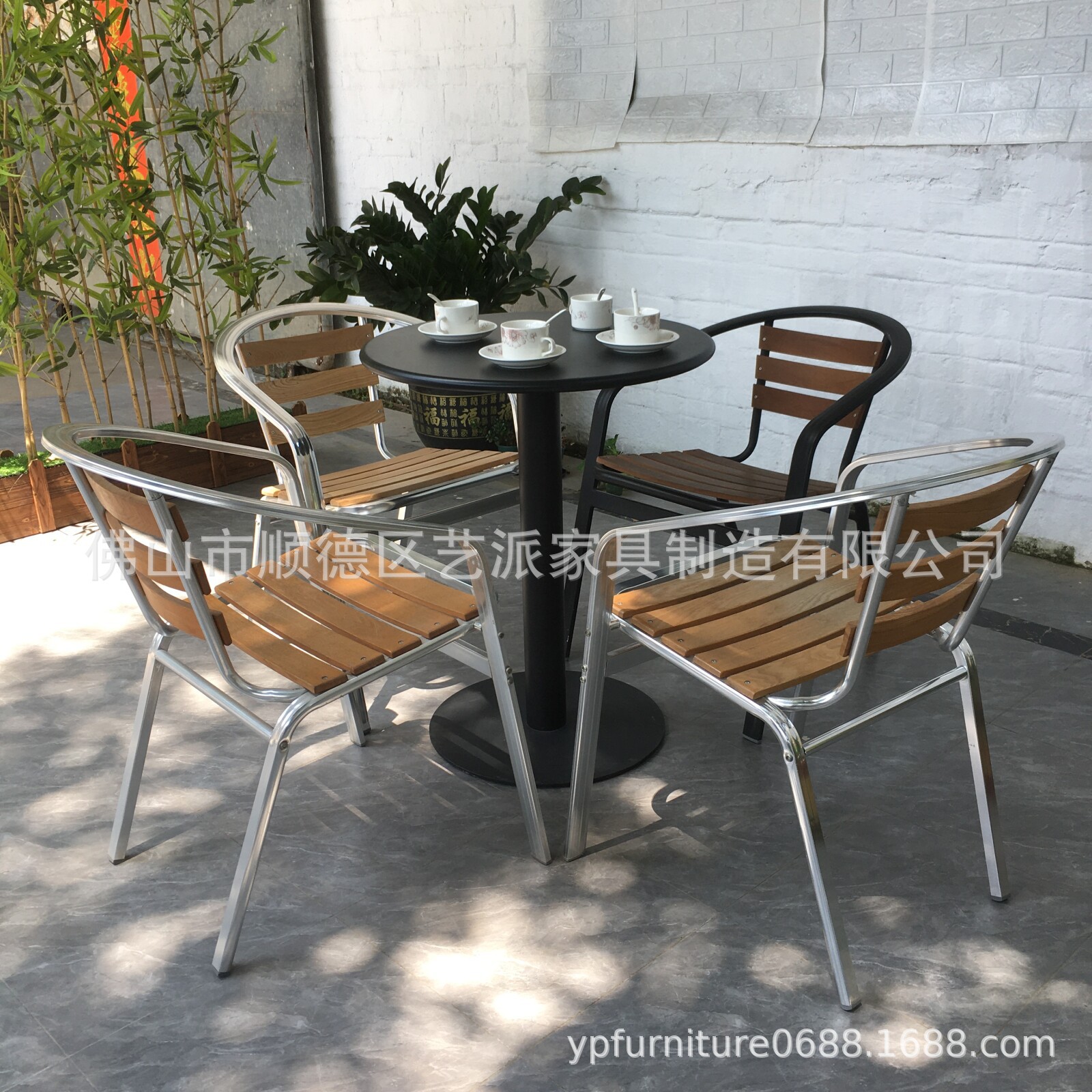 工場のアルミニウム合金フレームの背もたれと木の椅子は積み重ねられて省立方です。