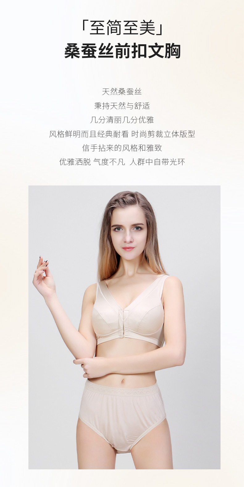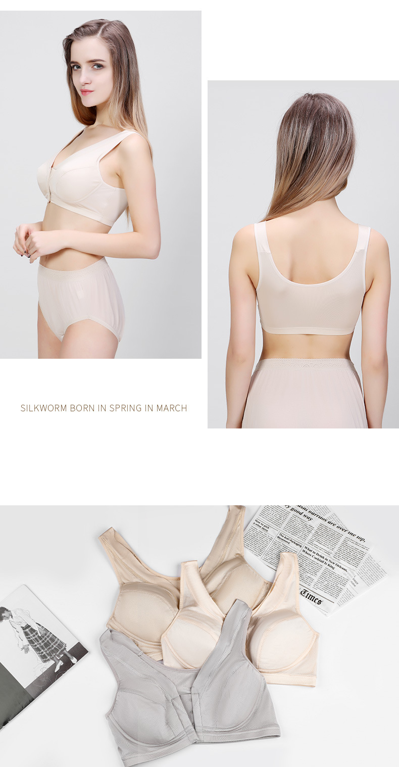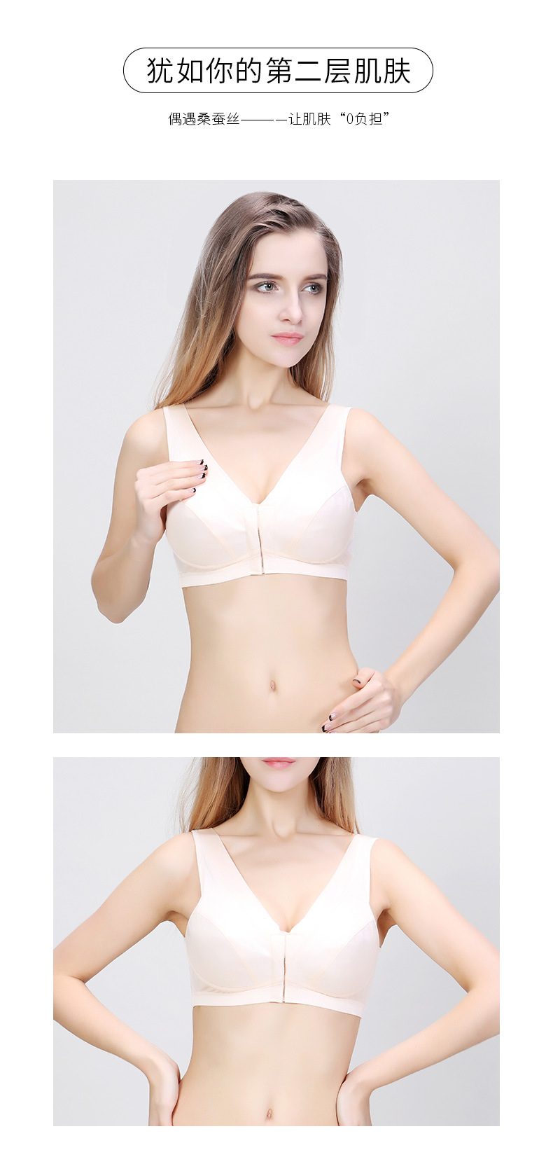 Haosangyuan シルクシームレスカッティングブラジャー快適で通気性のあるマルベリーシルクバックボタンシルク下着 2406