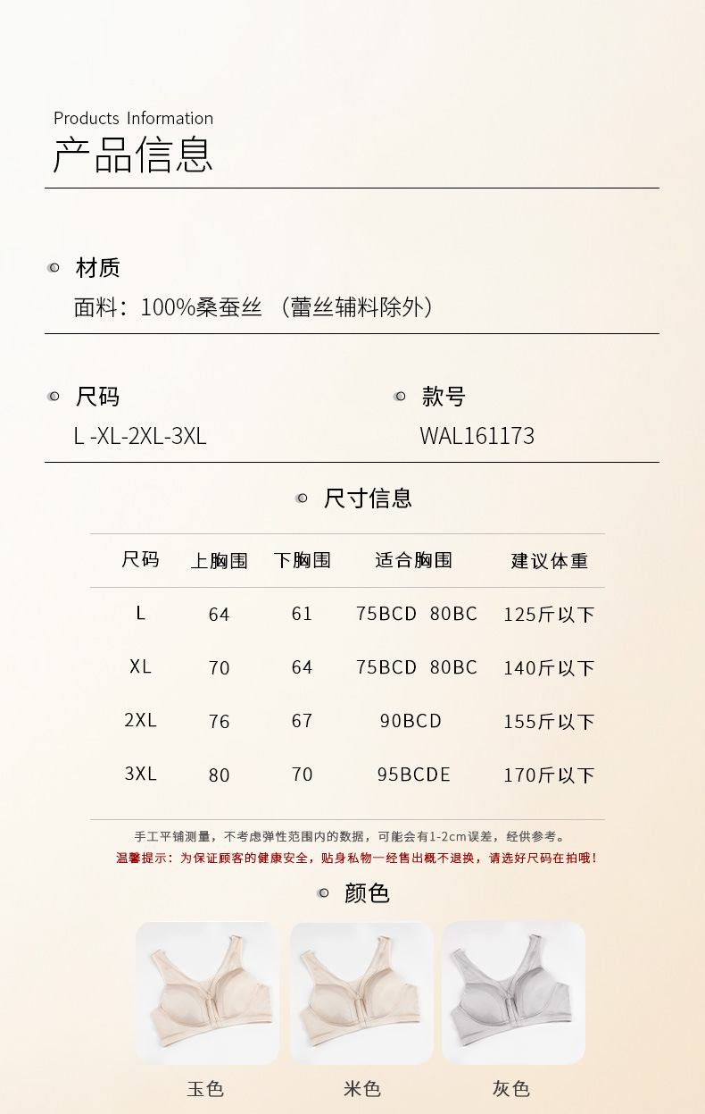 Haosangyuan 春夏女性下着マルベリーシルクノンワイヤー快適シームレスベストブラジャー 2529