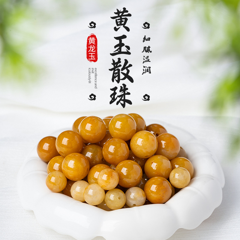 天然の黄竜玉のボールの散珠DIYのブレスレットのネックレスの玉のアクセサリーの数珠の部品の金糸の玉は卸売りを飾ります。