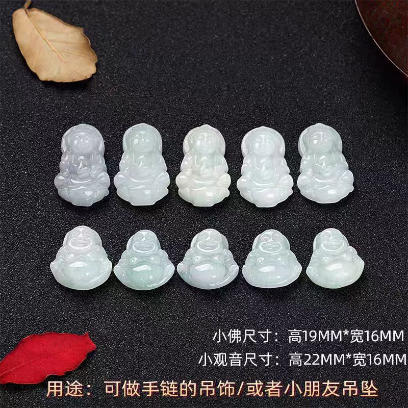 翡翠観音ペンダント卸売り天然a品ビルマ玉仏ペンダント中国式仏陀仏像豆青玉ネックレス