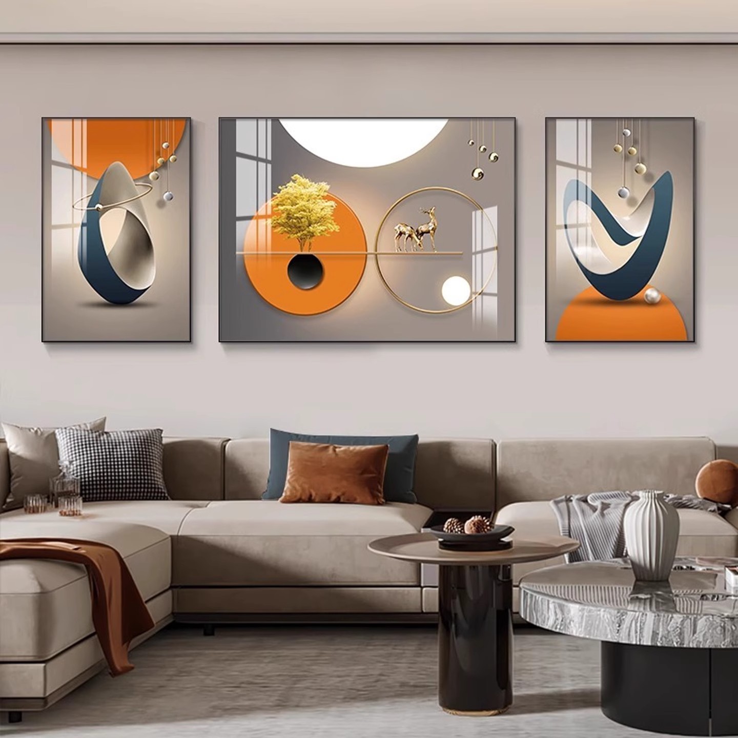 クリーム風客間装飾画高級感ソファー背景壁掛け画北欧シンプル三連画小清新壁画