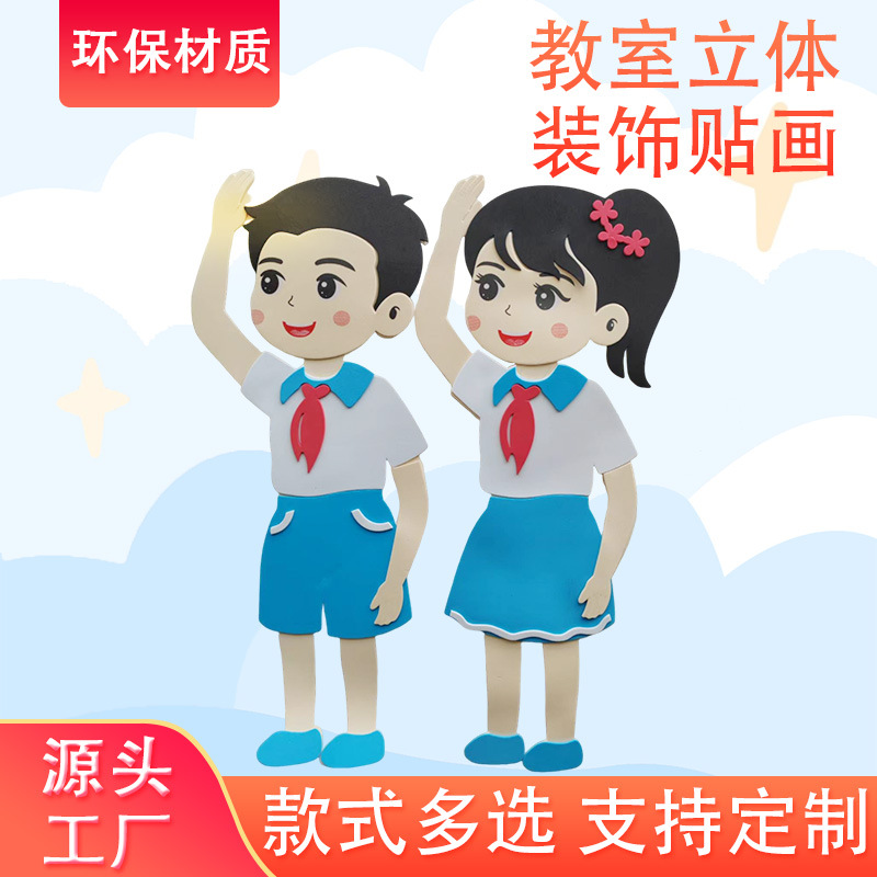 少年先鋒隊員敬礼キャラクターの壁貼り絵小学校クラス文化教室装飾立体壁貼り
