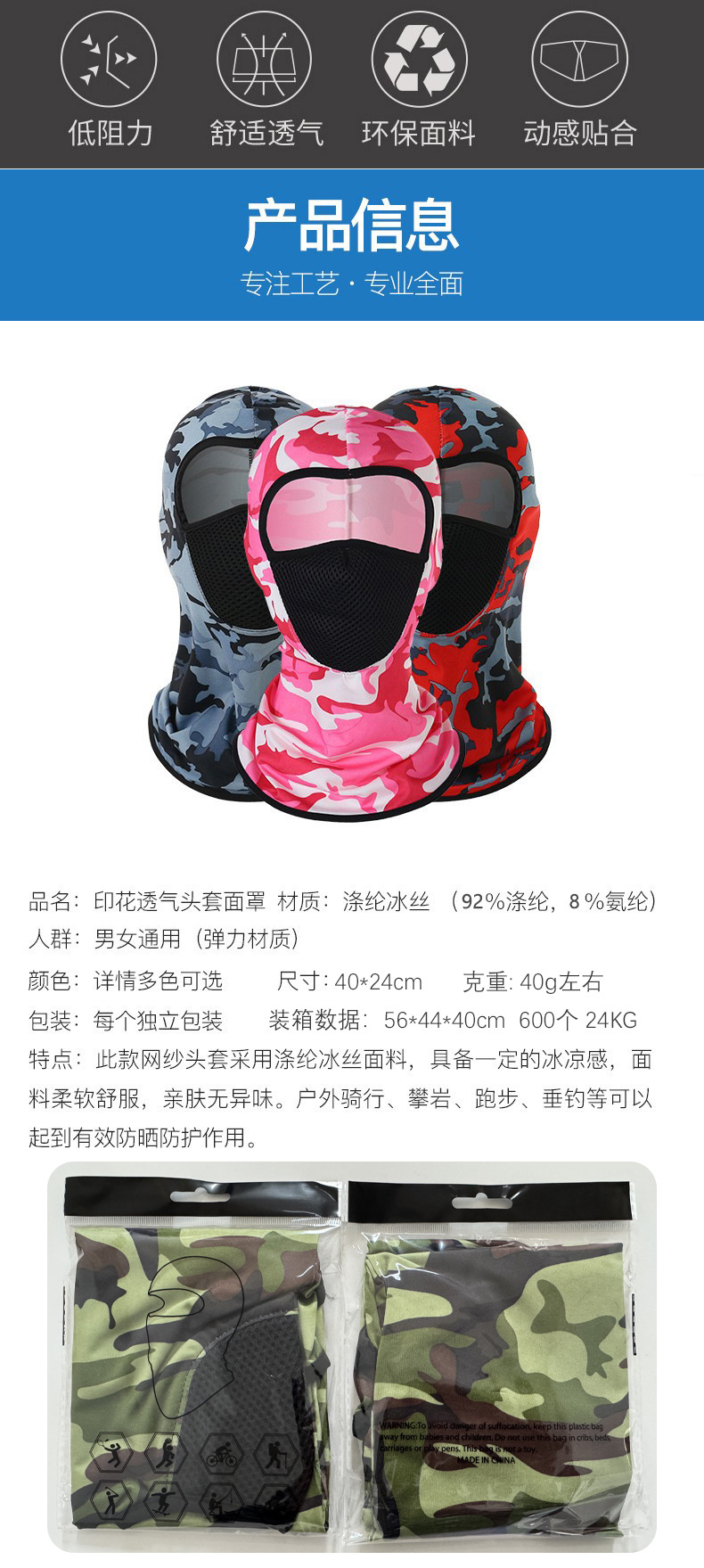 クロスボーダーアイスシルクサイクリングフード夏のアウトドアスポーツ日焼け止めマスク自転車オートバイライナー迷彩マスク